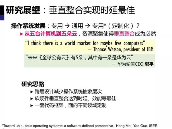鸿蒙系统真的只是面向智能手机的?现在外界对华为的自研系统还是一头雾水,但是从陈海波教授的研究来看,华为的鸿蒙系统的野心没这么小,智能手机只是其中的一部分,从网络上找到的论文来看,华为要做的系统是“一套代码框架面向不同领域定制”,软硬件垂直整合达到实验、效能等最佳,数据中心可用,PC、智能手机等消费级领域也能用。